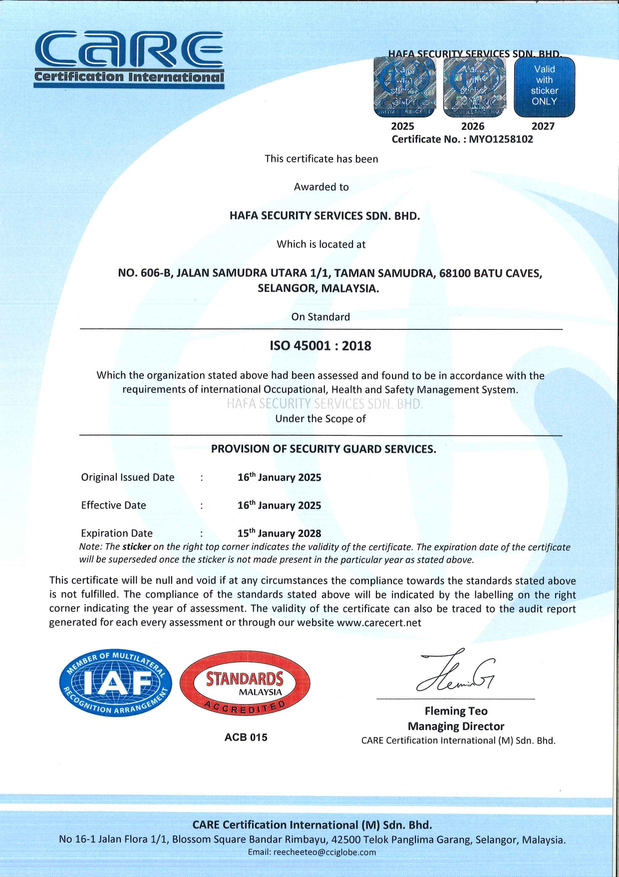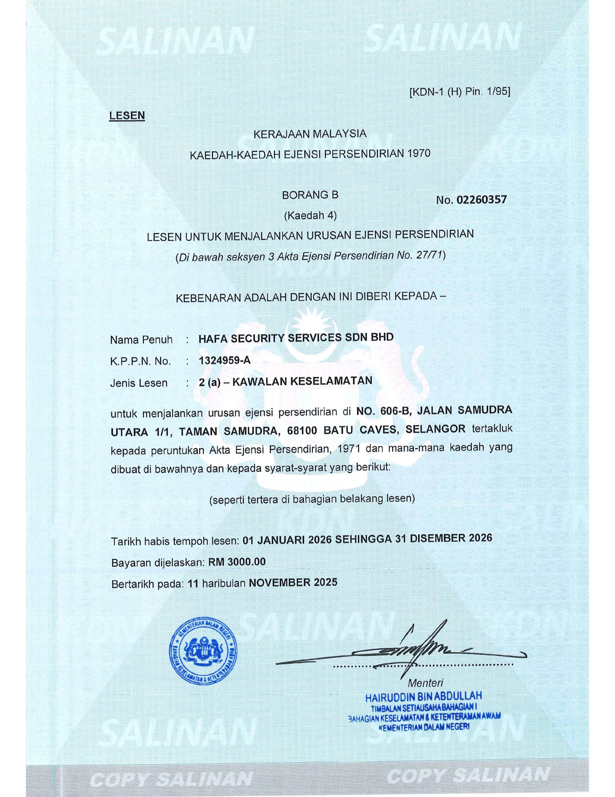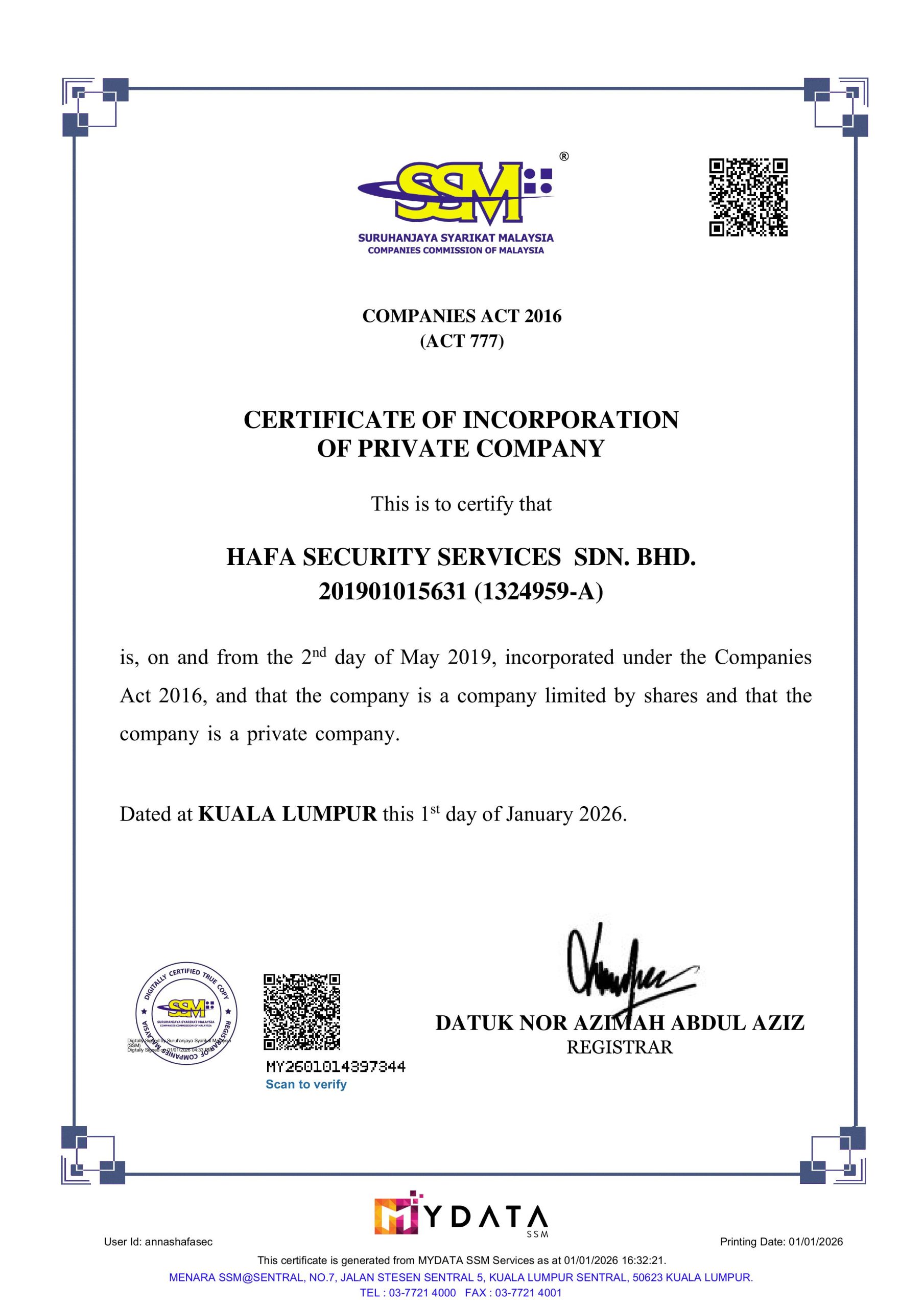 We are committed to making the name of HAFA synonymous with advanced and dependable security services for individuals, businesses and industries across Malaysia.